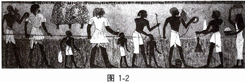 4. 图1-2所示的是一幅古埃及墓穴壁画。此画描绘了当时埃及人的( )。