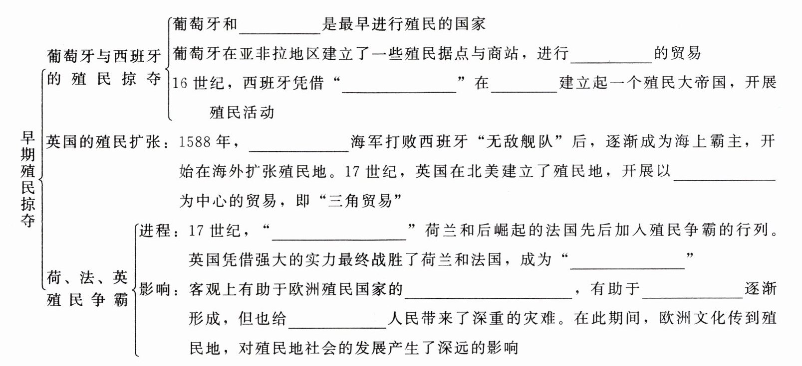 进程:17世纪,“____”荷兰和后崛起的法国先后加入殖民争霸的行列。英国凭借强大的实力最终战胜了荷兰和法国,成为“____”