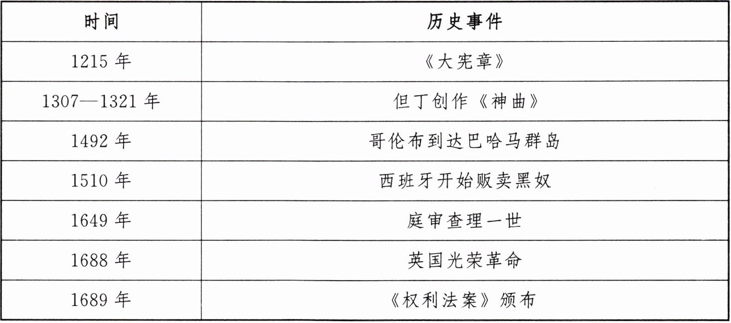 (2)事件:1688年英国光荣革命与1689年《权利法案》颁布。观点:英国通过政治变革与法律文献确立君主立宪制。论述:1688年光荣革命,资产阶级和新贵族以和平方式推翻詹姆士二世统治,避免了流血冲突,为资产阶级统治的确立奠定基础;1689年《权利法案》颁布,以法律形式限制王权,规定议会拥有立法权等,标志着英国君主立宪制初步确立。二者共同推动英国从封建君主专制向资产阶级代议制转变,巩固了资产阶级革命成果。
