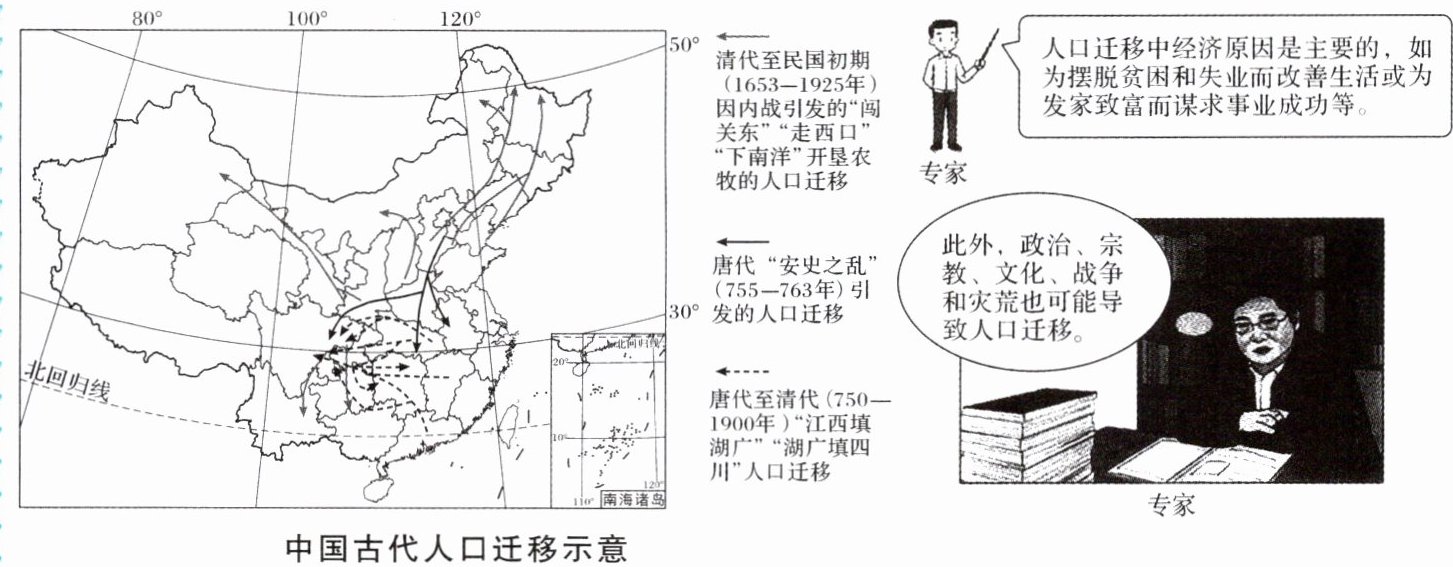1. 根据专家提供的研究资料,说出影响中国古代人口迁移的因素。____