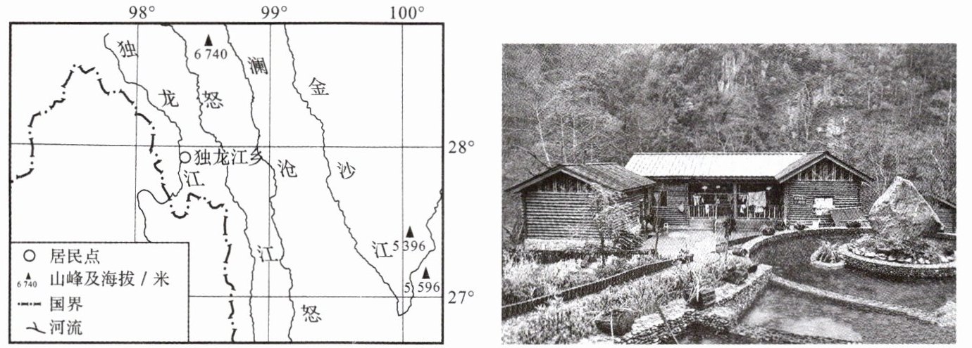 〔材料二〕 下图示意独龙江位置、独龙族传统民居。