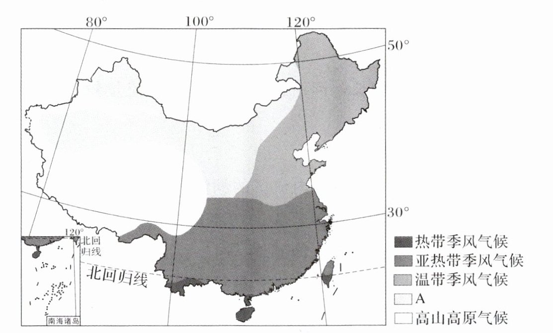 1. 据图可知,我国亚热带季风气候和温带季风气候的分界线是____。