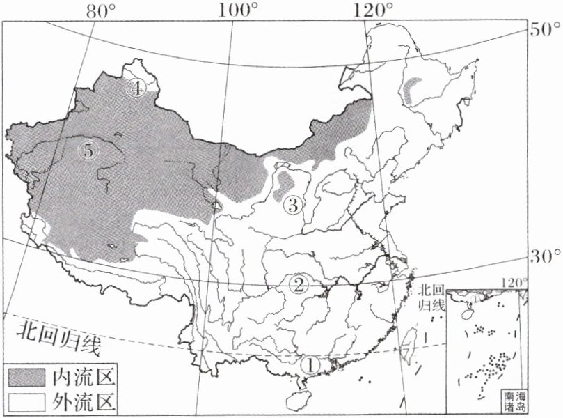 下图示意我国外流区和内流区分布,读图完成 1~3 题。