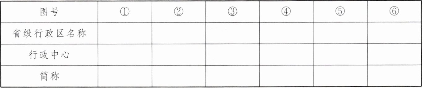 10. 下图示意中国部分省级行政区轮廓,读图填写下列表格。