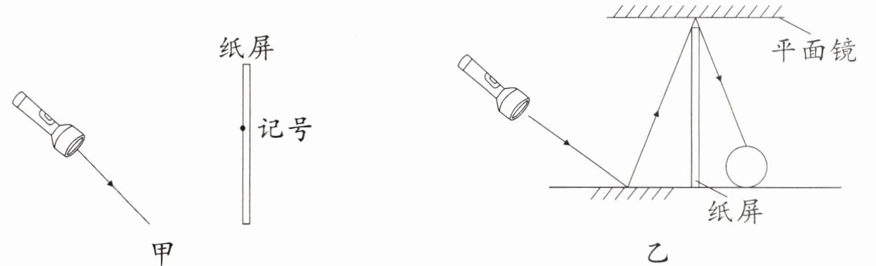2.在不改变手电筒和纸屏的位置的情况下,利用镜子让手电筒的光照到纸屏后面的小球,如图乙所示。