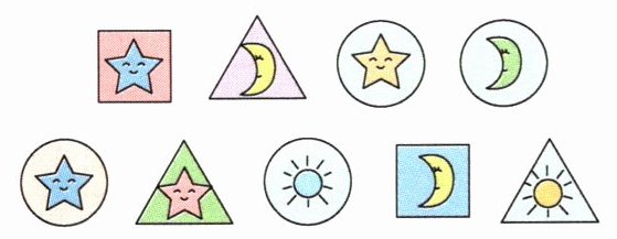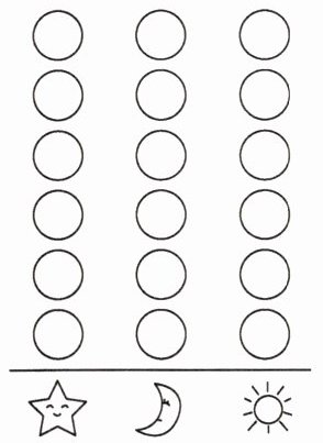 (1)按图案的种类分一分,涂一涂,填一填。 ☆( )个 🌙( )个 ☀( )个