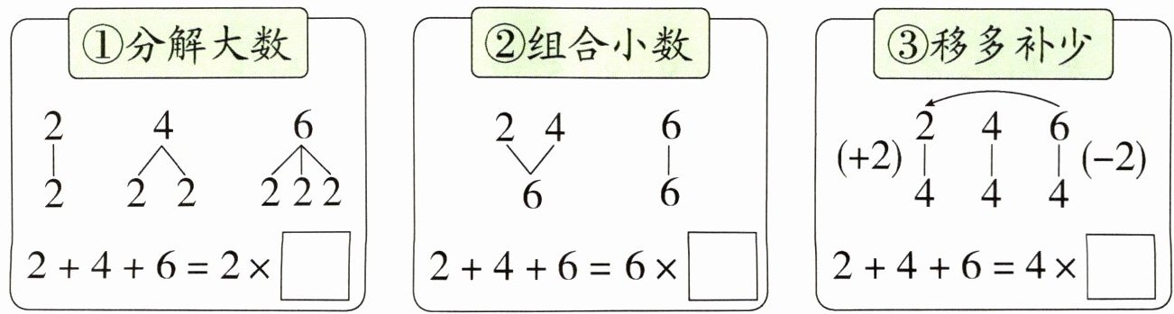 3. 下面是改写算式$2+4+6$的三种方法,请你补充完整。