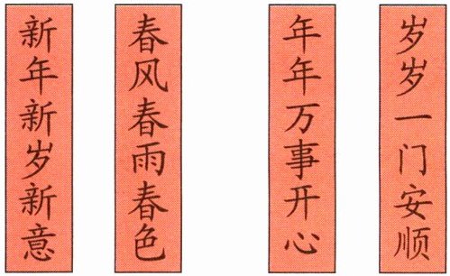 (2)下面是小美送给王阿姨家的春联,帮她算一算,一共写了多少个字?