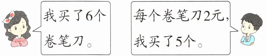 2. 我买了6个卷笔刀。 每个卷笔刀2元,我买了5个。