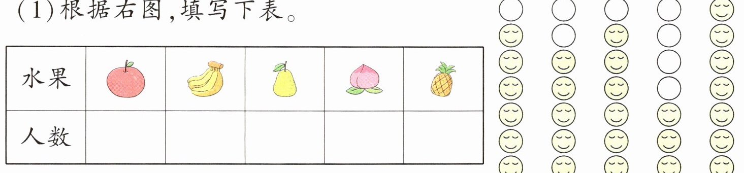 1. 二(1)班同学最喜欢吃的水果情况如右图。