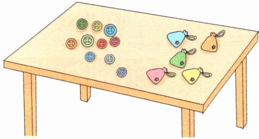 2. 小美要做香包,每个香包缝2颗纽扣。如果她有10颗纽扣,最多能做几个香包?做完后还剩几颗纽扣?