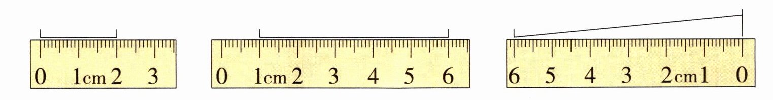 解析:本题主要考查长度的测量方法。测量物体长度时,把尺的刻度0对准物体的左端,物体的右端对着几,物体的长度就是几。如果物体左端没有对准尺的刻度0,那么物体长度等于物体两端所对刻度相减的差。