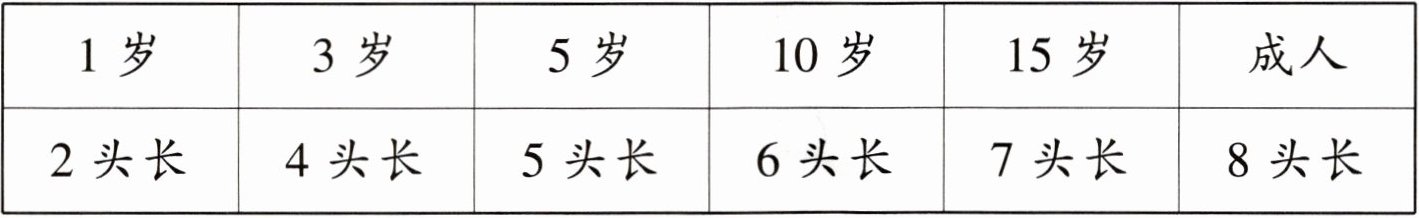 4. 通常一个人在不同年龄段的头长与身高存在如下关系。根据表格回答问题。