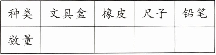 | 种类 | 文具盒 | 橡皮 | 尺子 | 铅笔 |