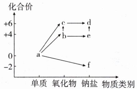 3.D [由图可知,a为S,b为SO₂,c为SO₃,d为Na₂SO₃,e为Na₂SO₄,f为Na₂S,据此分析解题。S不能一步转化为SO₃,A错误;铜和浓硫酸加热时反应生成CuSO₄、SO₂和H₂O,B错误;NO₃⁻在酸性条件下能将Na₂SO₃氧化为Na₂SO₄,故不能用盐酸酸化的Ba(NO₃)₂溶液检验Na₂SO₃是否变质,C错误;酸性环境下,Na₂S与Na₂SO₃的水溶液混合后发生反应:2S²⁻ + SO₃²⁻ + 6H⁺ = 3S↓ + 3H₂O,溶液变浑浊,D正确。]