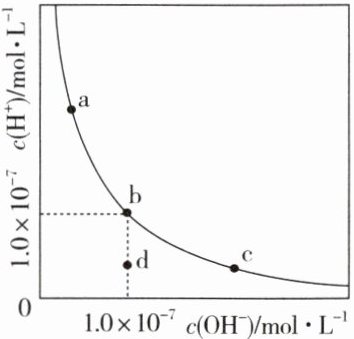 2. 一定温度下,水溶液中$H^+$和$OH^-$的浓度变化曲线如图。下列说法正确的是(