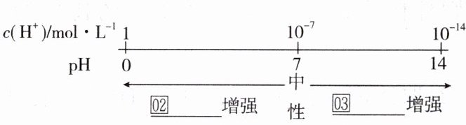 (1) $c(H^+) > c(OH^-)$,溶液呈$\underline{01}$性。