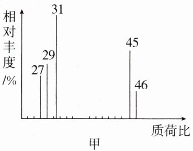 $(2) 用质谱仪测定该有机化合物的相对分子质量,得到如图甲所示的质谱图,则其相对分子质量为$$$46