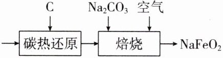 $\xrightarrow[碳热还原]{C} \xrightarrow[焙烧]{Na_{2}CO_{3}、空气}NaFeO_{2}$