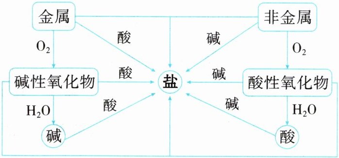 金属单质$\xrightarrow{O₂}$碱性氧化物$\xrightarrow{H₂O}$碱$\xrightarrow{酸}$盐