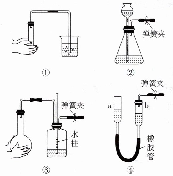 2. 下列各装置,夹紧②、③、④中的弹簧夹,并作相关操作,漏气的装置是(
