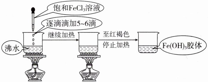 (4) 沸水中滴加适量饱和FeCl₃溶液,形成带电的胶体,导电能力增强。(