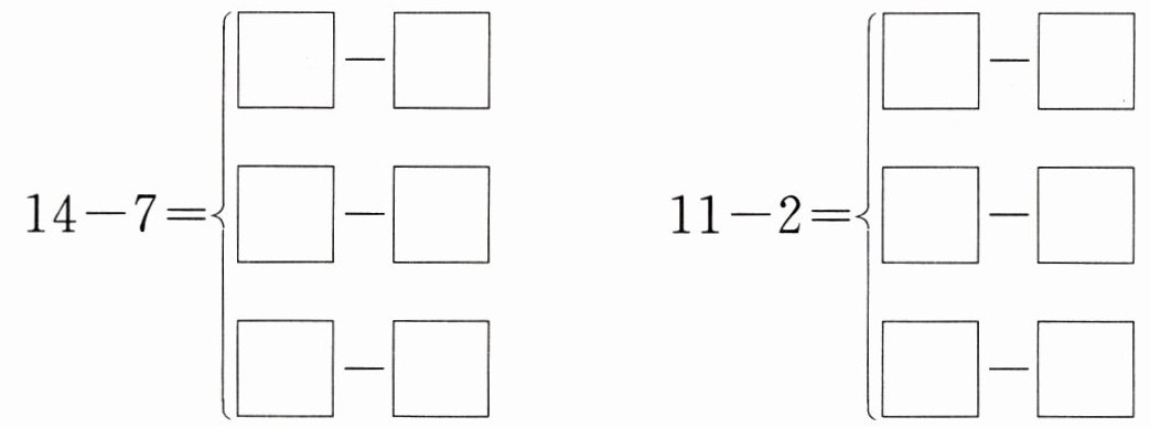 【解析】:先计算出$14 - 7 = 7$,$11 - 2 = 9$,然后根据差是$7$和$9$分别写出减法算式。