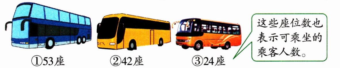 )号车比较合适,小朋友都上车后还有多少个空余座位?答:$ 53 + 42 - 90 = $