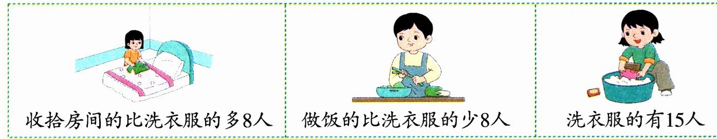(2)收拾房间的同学有多少人?收拾房间的和洗衣服的一共有多少人?
