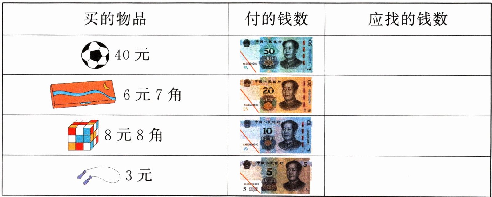 );若付款金额为 15 元,物品价格为 11 元 7 角,应找回(3 元 3 角
