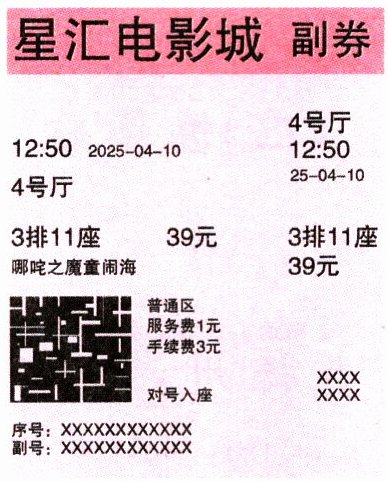 七 仔细阅读下面的电影票,完成练习。(填序号)