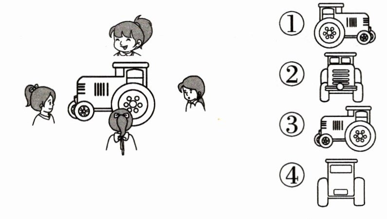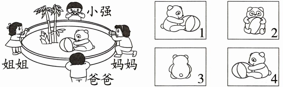 2. 小强一家去公园玩,他们在不同的位置给熊猫拍了照片,你能帮助他们找出哪张照片是谁拍的吗?