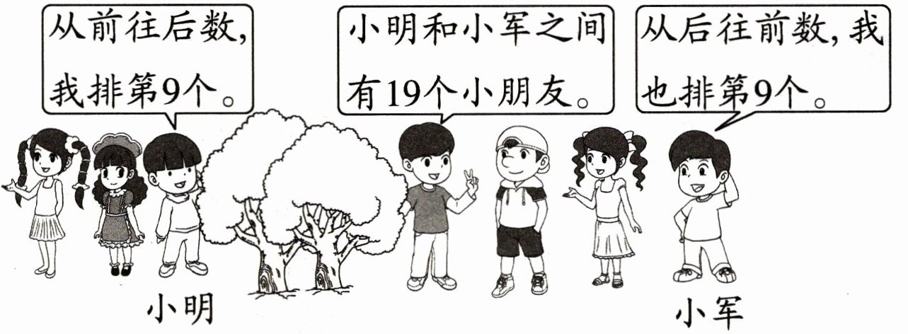 5. 有一排小朋友,淘气在林林左边,从左往右数,淘气报8,从右往左数,林林报9,淘气和林林之间有3人,请问这一排小朋友一共有多少人?
