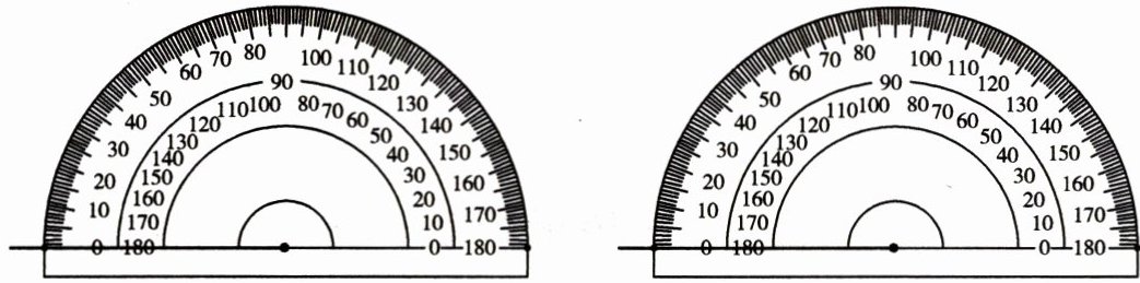 (1)请在量角器上分别画出$65^{\circ }和135^{\circ }$的角。