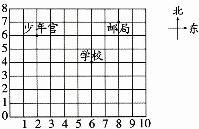 (1)学校的位置在$(6,4)$,少年宫的位置在(