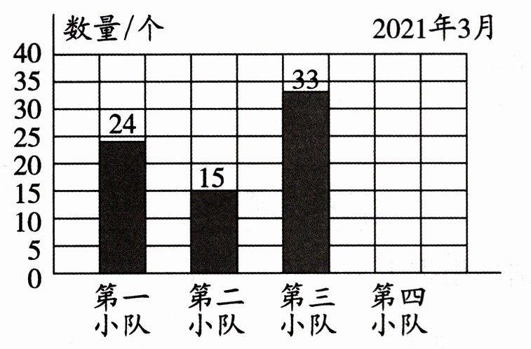 2. 花园小学四年级调查了本学期各小队回收易拉罐的数量,并制成了右面的统计图。已知这四个小队平均每个小队回收易拉罐25个,先计算第四小队回收易拉罐的个数为