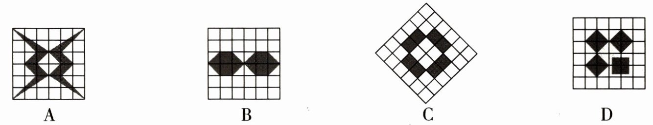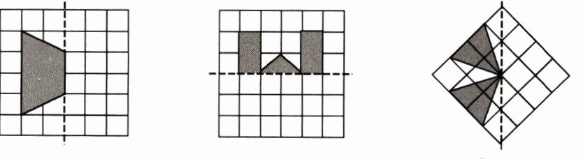 根据对称轴(虚线)确定对称点,例如左上角阴影三角形的顶点,按照对称轴找到对称位置的点。