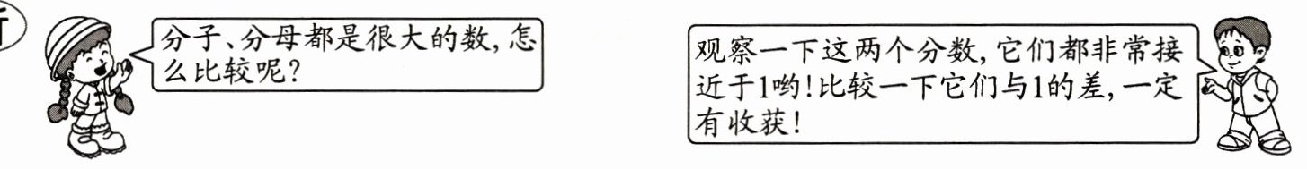 $(1) $这两个分数的共同特点是非常接近$1,$且分子比分母小$($