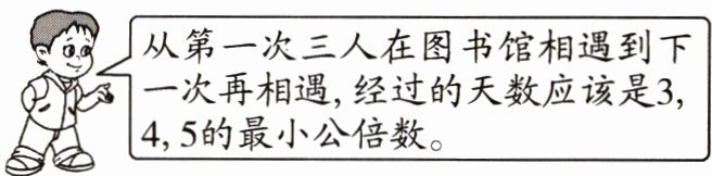 从第一次三人在图书馆相遇到下一次再相遇,经过的天数应该是3,4,5的最小公倍数。