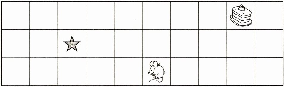 1. 在☆的上面一格画□。