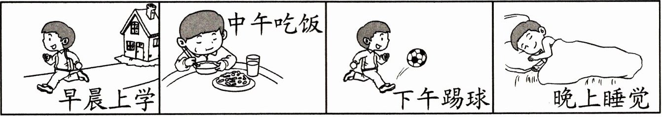 七、猜猜小明一天的时间,用线连一连。