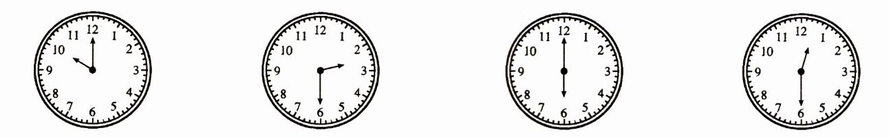 六、按下面的时间,在钟面上画出时针和分针。