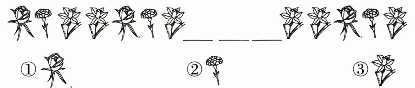 一年级同学要开联欢会,手工小组的同学制作了一些绢花布置黑板,但是掉了3朵,你知道掉了哪几朵吗?请在横线上填上合适的序号。