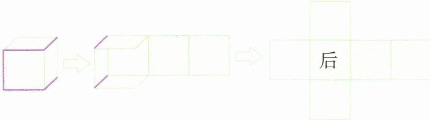 3. 易错题 一个正方体纸盒,沿着紫色的边剪开,就能够得到它的展开图。请你在展开图中标出其他 5 个面的名称。