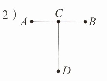 3 解析:将圆规两脚拉开,先将有针尖的脚固定在点A上,另一只脚固定在点B上,确定线段AB的长度。然后将固定在点B的脚旋转到点A的左边,在直线上找到点C,作出线段AC;再将有针尖的脚固定在点B 上,另一只脚旋转到点B的右边,在直线上找到点D,作出线段BD。作完图后,以点A为一个端点的线段有:线段AC、线段AB和线段AD,一共3条。