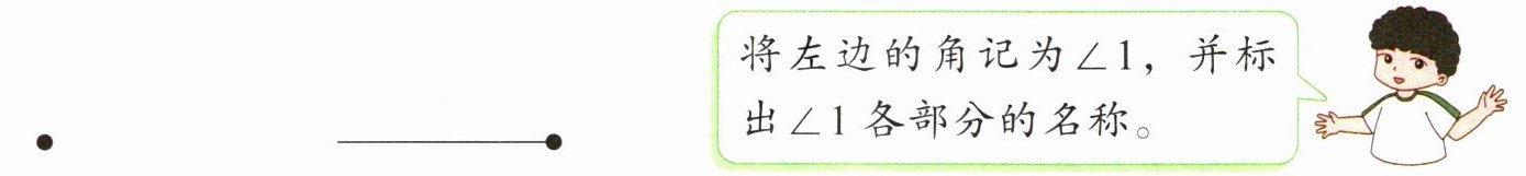将左边的角记为$∠1$,并标出$∠1$各部分的名称。