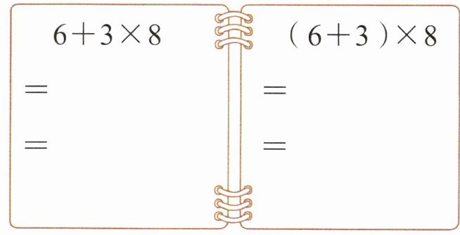 |$6+3×8$|$(6+3)×8$|