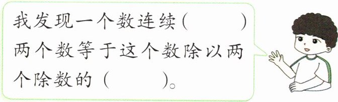 我发现一个数连续( )两个数等于这个数除以两个除数的( )。