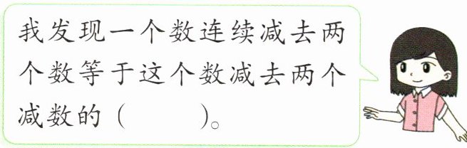 我发现一个数连续减去两个数等于这个数减去两个减数的( )。