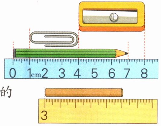 4.[新趋势·说理分析]欢欢测量下图的铅笔,她是这样想的:“从3到9数一数,3、4、5、6、7、8、9,答案是7厘米。”欢欢的